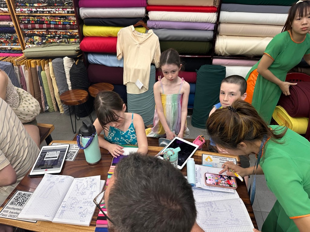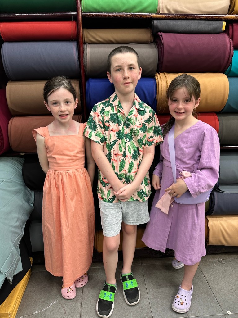 We made sure to visit a tailor our first day there so that we would have enough time to get a few pieces made. I had done a bit of thinking beforehand so went with a good idea of what I wanted – the same as last time though – I felt totally unprepared when we actually got there. I should have spent more time really considering what colours and fabrics or any tweaks I wanted from the pictures I had. The shops themselves are small, often busy and hot. The women are professional tailors and hustlers. It’s their job to get you in and out as quickly as possible, selling as many pieces for as much money as they can get.