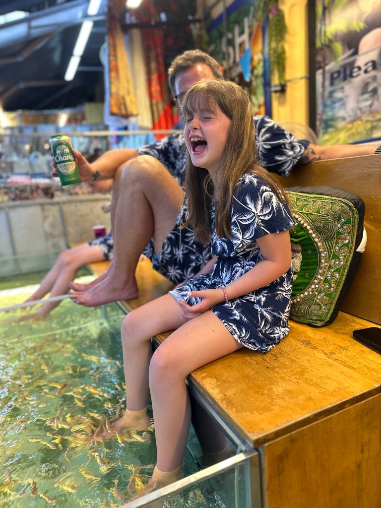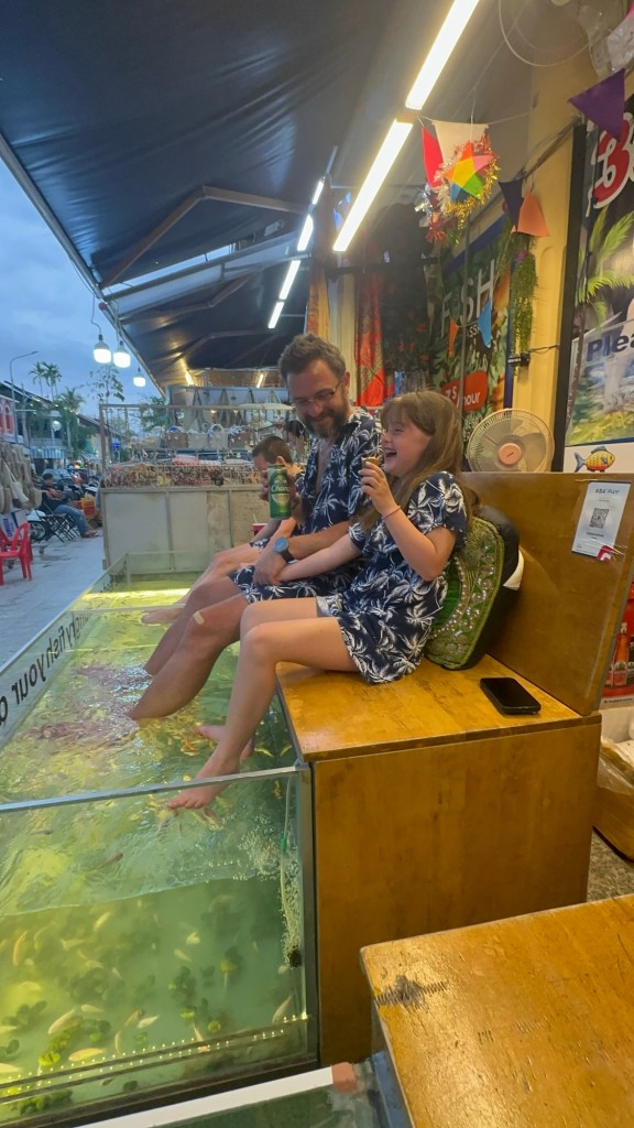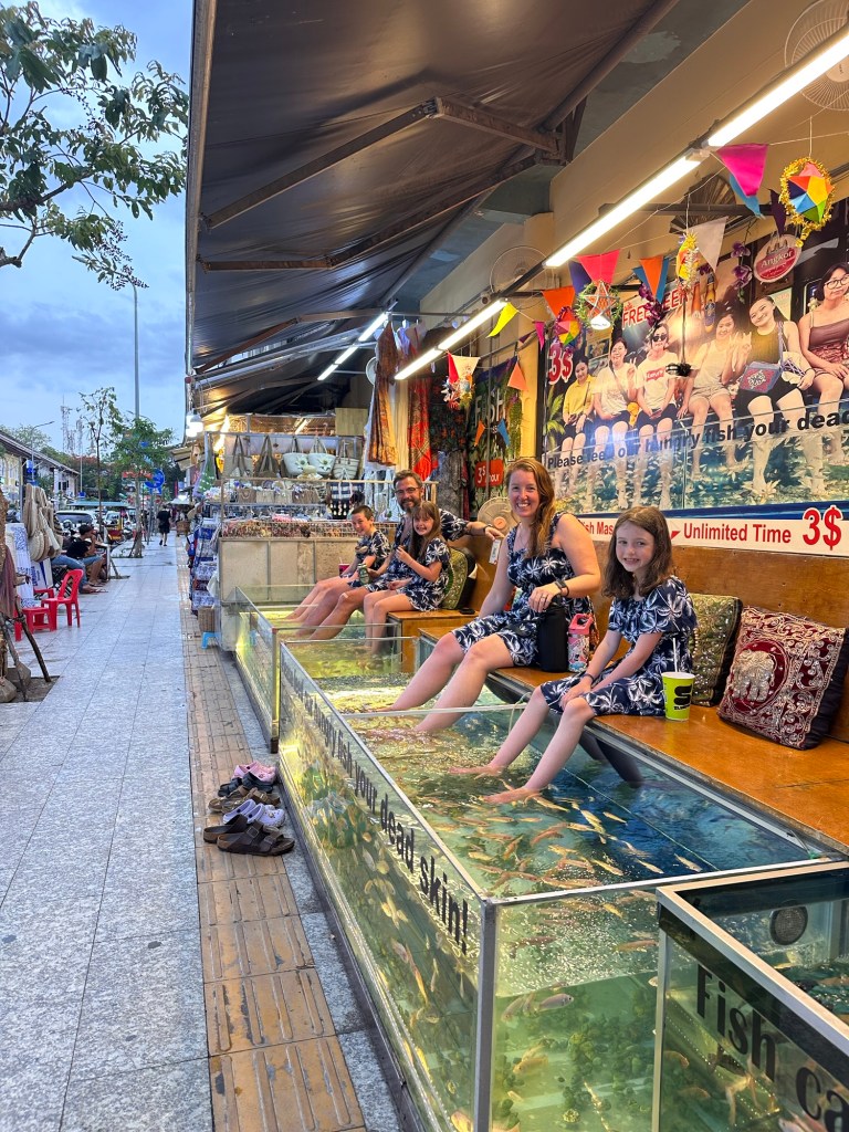In Siem reap you are able to visit fish spas – we did this the last time we were here and it was definitely something to remember. They have these huge fish tanks with benches beside them. For $3 (which includes a beer or drink of choice) you can sit there and have the fish nibble all the dead skin off your feet. It is just about as weird as it sounds, but I can’t deny it works. Your feet feel brand new after about 20 minutes.